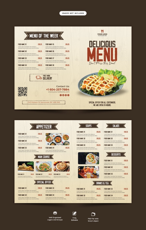 餐饮美食菜单价目表正反面PSD模板设计适用于餐饮价目表设计