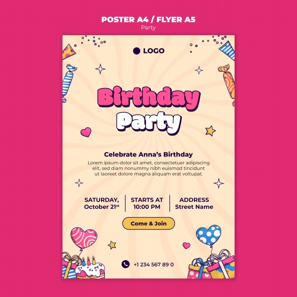 生日派对宣传海报传单设计适用于生日派对海报或传单设计