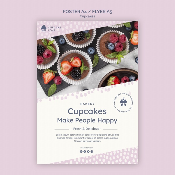美味杯子蛋糕宣传海报传单设计适用于蛋糕美食传单设计