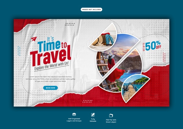 旅行时光主题横幅海报PSD模板适用于旅行海报模板设计