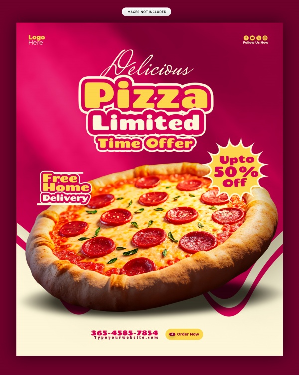 美味披萨折扣海报招贴PSD素材适用于披萨折扣海报设计