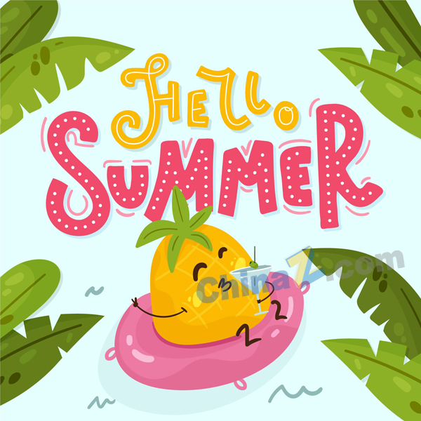 你好夏天矢量卡通海报适用于夏季海报设计的AI格式素材